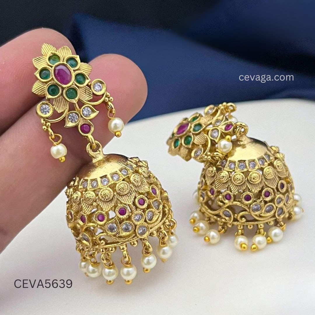 Matte Finish AD Stones Jhumka Premium Quality