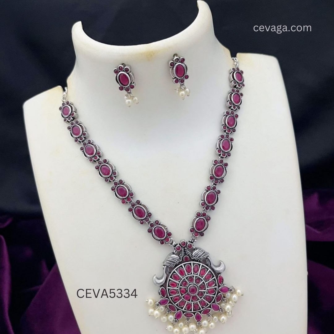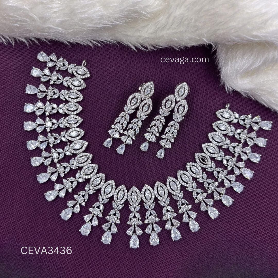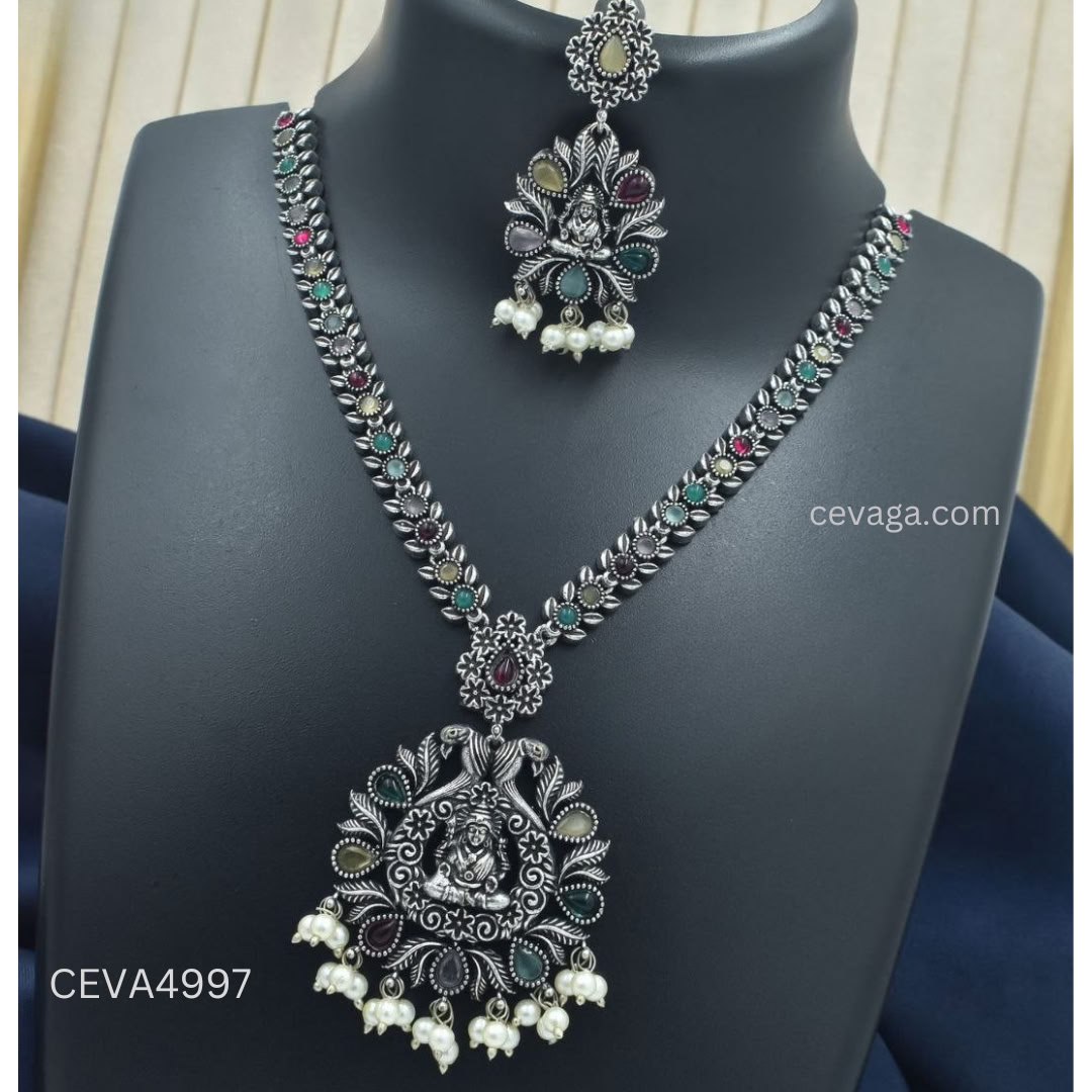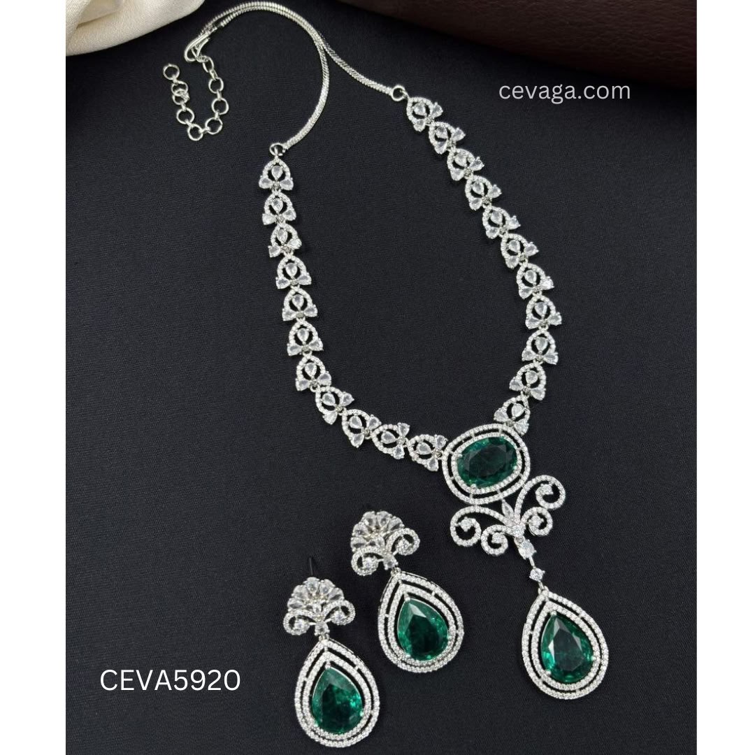 PREMIUM QUALITY SILVER AD NECKLACE SET