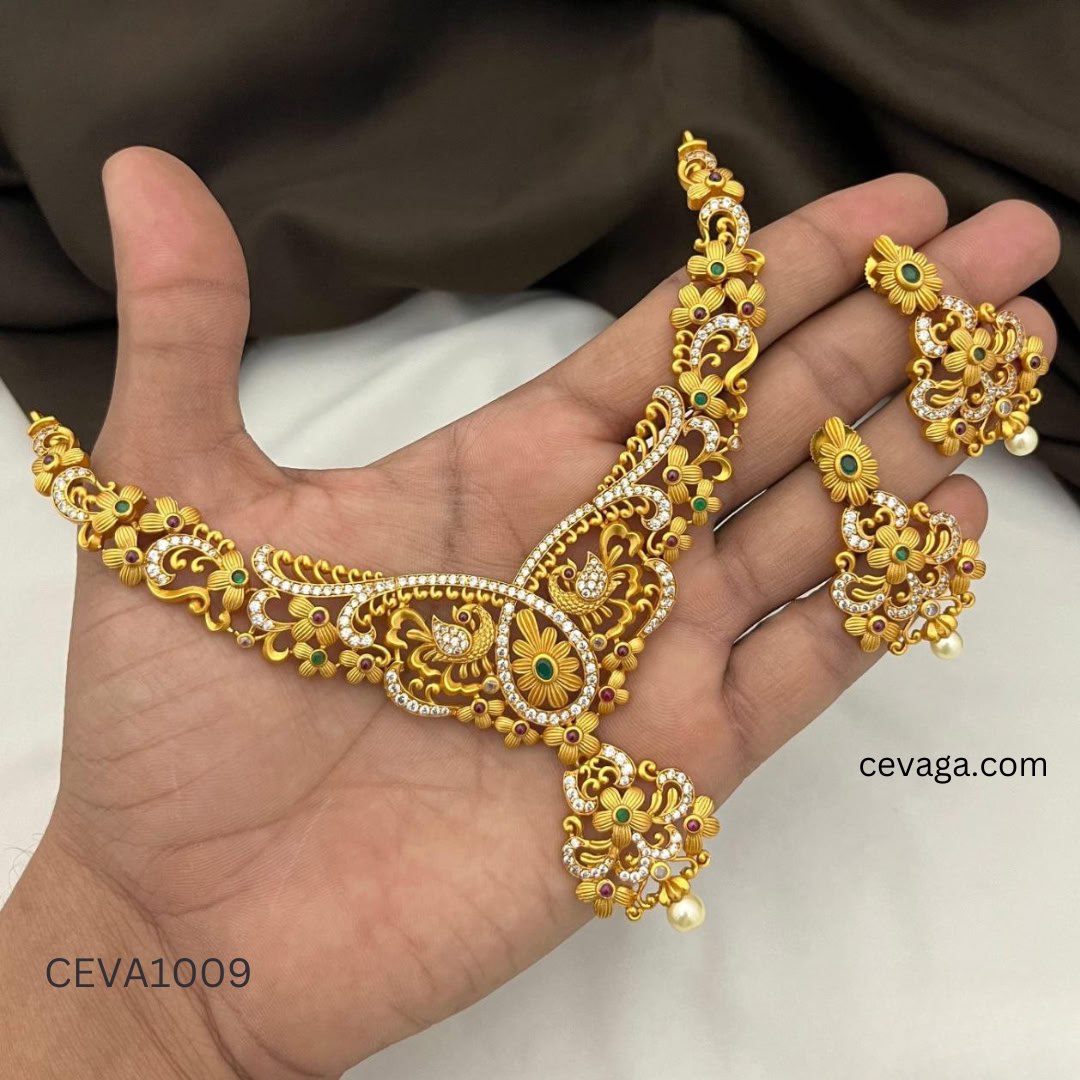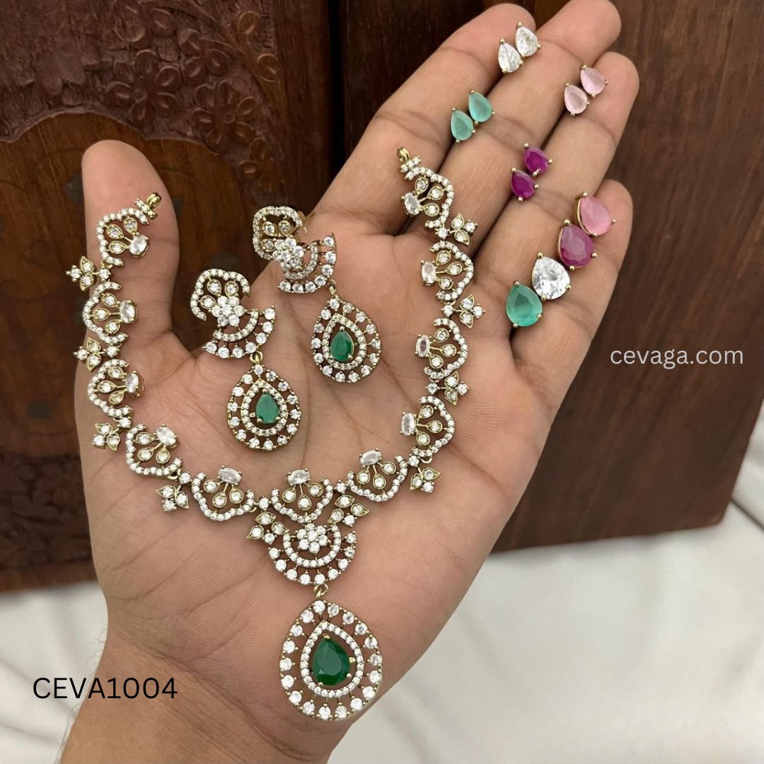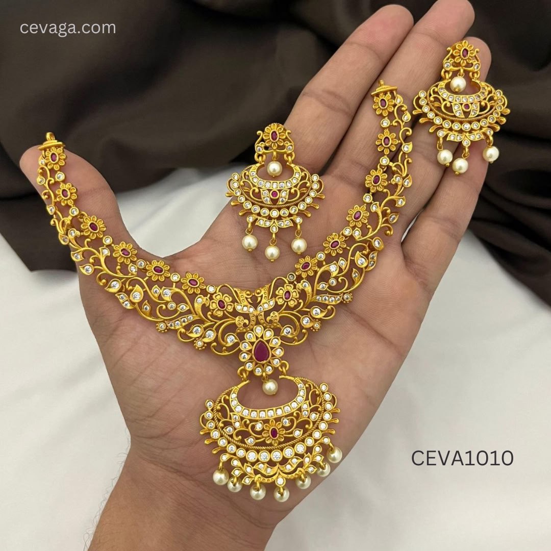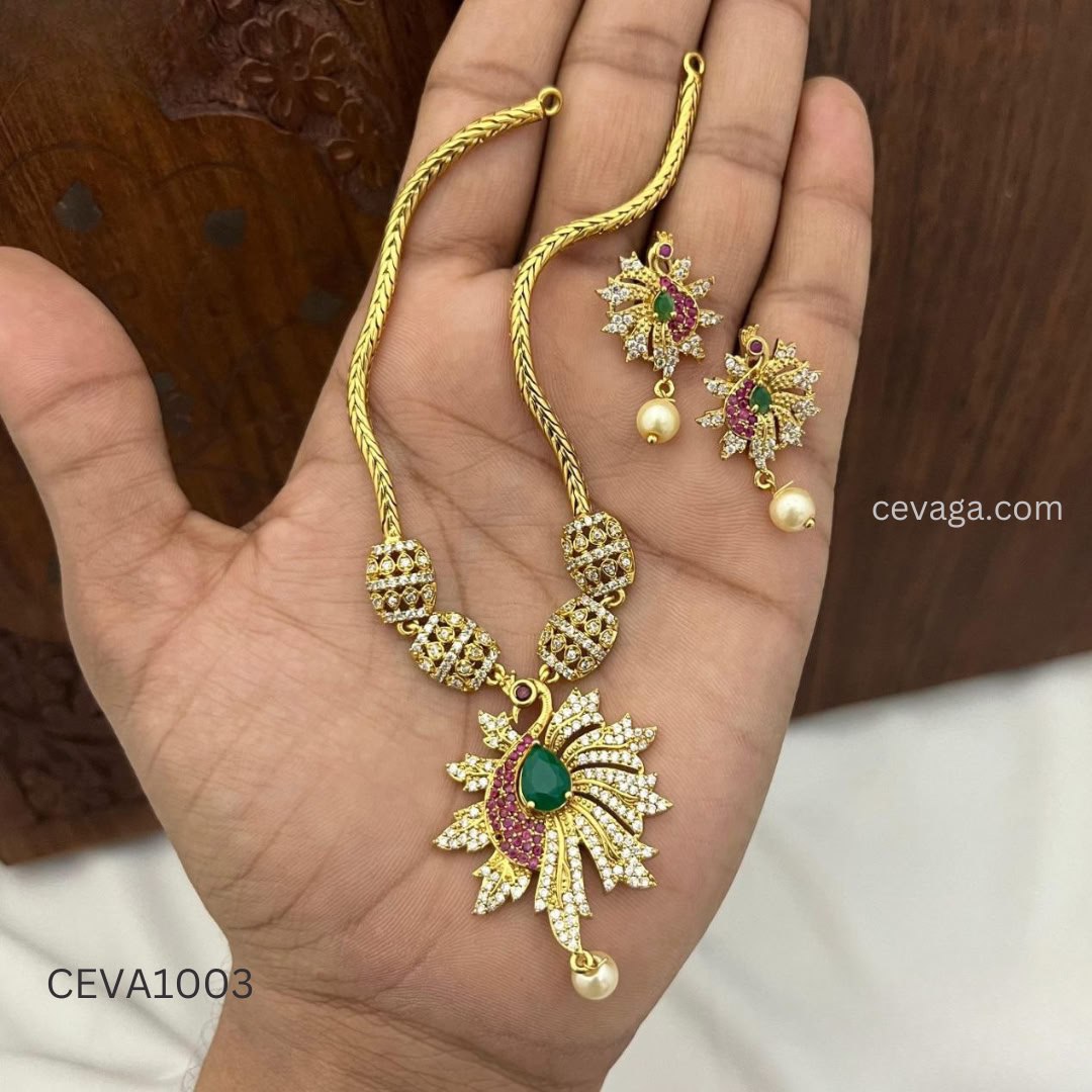 PREMIUM QUALITY SILVER AD NECKLACE SET